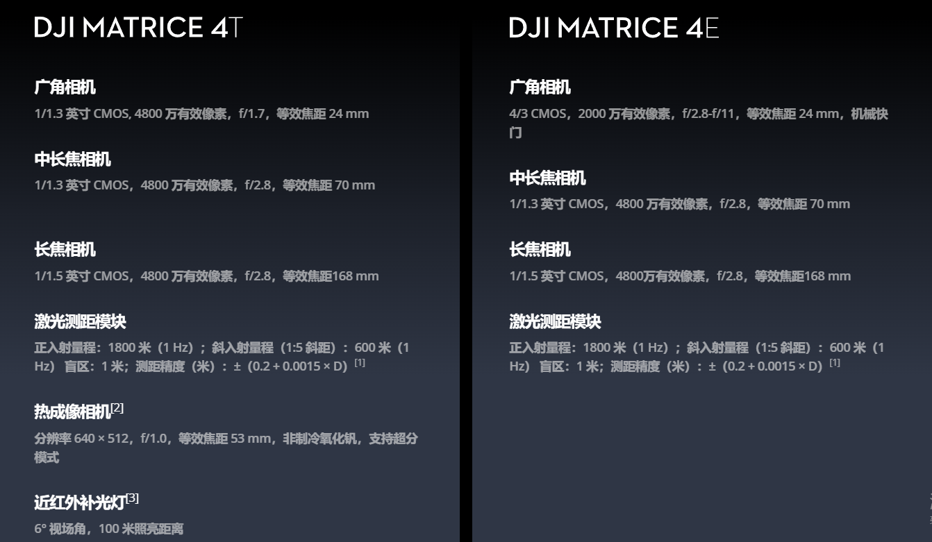 轻巧随行,智能*,大疆行业全新小型智能多光旗舰无人机 DJI Matrice 4 系列正式登场。它包含 Matrice 4T 和 Matrice 4E 两款机型,支持智能检测、激光标注测量等多项智能功能。且开放机身算力,感知性能大幅跃升,飞行系统更安全更可靠,配件亦*升级。Matrice 4T 可覆盖电力巡检、应急抢险、公共安全、水利林业监测等众多应用场景,Matrice 4E 更能覆盖高精度专业测绘、精细化表面巡检等场景。智能化空中作业新篇章,从此开启。